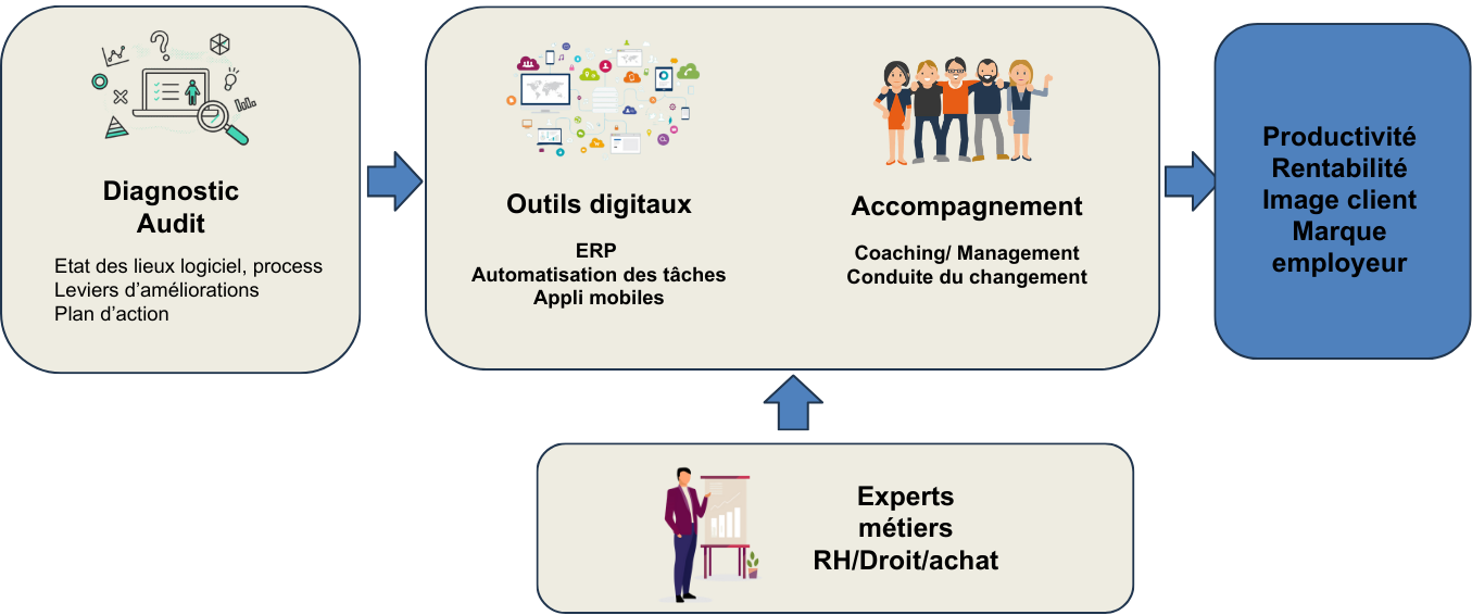 Comment augmenter les gains financiers et améliorer le fonctionnement de son entreprise grâce à des logiciels innovants, de l’amélioration des process et de conseils en management.